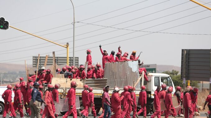 Fifty minibus taxis, blaring Kwaito music, roared down the street. They smashed through the plastic road cones the police had set up to “blockade” the site.
