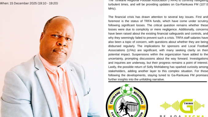 Sizwe Nkosi, the author of the ‘Unseen King of Pretoria’, will be on Ga-Rankuwa FM on the 15th of December 2025 at 19:10, but for a different organisation, the Tshwane Regional Football Association. Tune in to Frequency 107.0 to listen